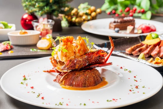 フレンチコースでは、オマール海老と帆立貝のマリアージュや国産牛フィレ肉のポワレなど、目にも鮮やかな料理の数々をご用意。鉄板焼きでは、イセ海老や神戸牛などの厳選した贅沢食材を目の前で焼き上げます。