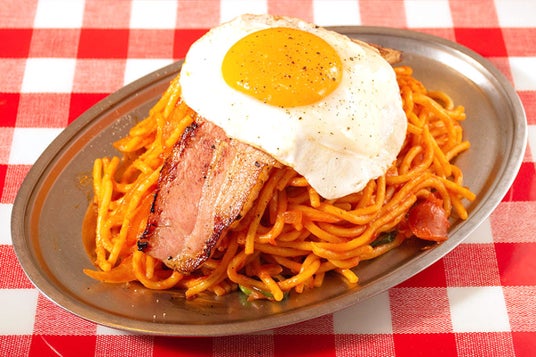 自慢の極太麺は前日に茹で置きして程よく水分を吸わせておくことで、ソースと絶妙に絡むよう仕上げています。毎日お店で手作りしているソースは、他では決して食べられない味わいが魅力。ボリューム感のあるスパゲッティー(小盛300g / 並盛400g / 大盛500g / メガ盛600g)は、目玉焼きや厚切りベーコン、焼きチーズといった追加トッピング(有料)で自分好みにカスタマイズすることも可能です。