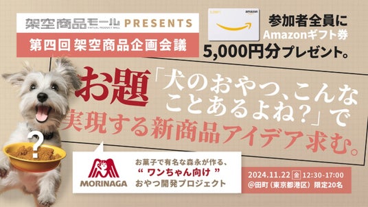 森永製菓株式会社(東京都港区芝浦、代表取締役社長・太田 栄二郎)は、当社の技術力をベースとする“犬のおやつ”に関する新商品アイデアについて、株式会社NTT DXパートナー(本社:東京都新宿区、代表取締役社長 阿部 隆 以下、NTT DXパートナー)が提供する「架空商品モール※」の一部機能を使ったワークショップを11月22日(金)に開催します。