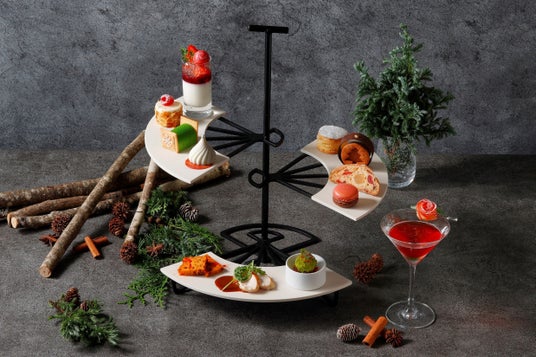 まるでオーナメントのように華やかで愛らしい見た目と、リッチな食材で、クリスマスの特別な高揚感を表現したメニューがティースタンドを彩ります。