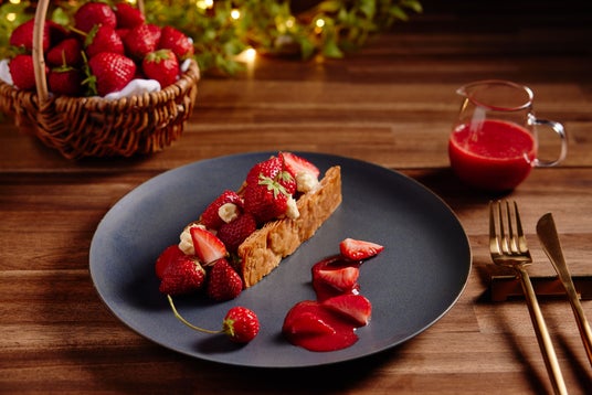 自分で摘んだお気に入りのいちごを贅沢に使用し、パイやカスタードクリームなどのトッピングを自由に組み合わせて、オリジナルのミルフィーユを作ります。今回はアクセントとして、フランボワーズのリキュールで香りづけした、いちごソースを使用。ふんわり香るフランボワーズのリキュールが、風味を豊かにさせ、より一層いちごの甘さを引き立たせます。いちごがずらりと並び、イルミネーション輝く空間で食べるオリジナルミルフィーユは格別です。