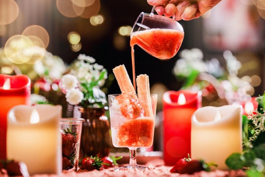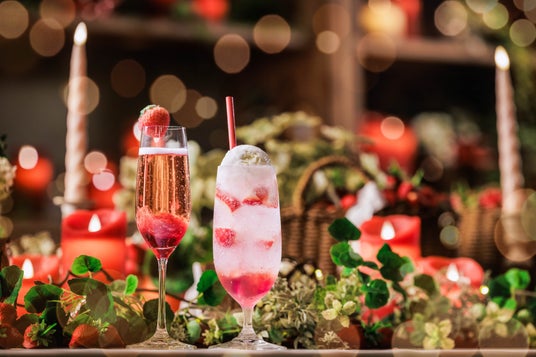 仲間と語らう長い夜は「いばらキッス」を楽しめる2種類のドリンクで乾杯してスタート。「いちごの贅沢スパークリング」は、いちごの果肉が入ったコンフィチュールの層の上にスパークリングワインを注いだ、果実感溢れるカクテルです。スパークリングワインの酸味と「いばらキッス」の甘味がマッチした爽やかな味わいを楽しめます。「いちごのご馳走クリームソーダ」は、「いばらキッス」の食感が楽しめるノンアルコールドリンクです。「いばらキッス」の甘酸っぱさとアイスクリームの組み合わせが相性抜群の一品です。