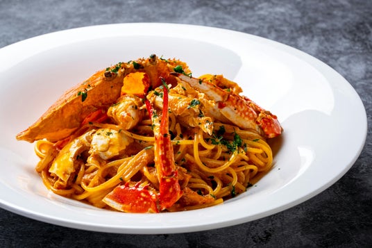 北海道イタリアン ミア・ボッカを代表するロングセラー商品「渡り蟹のトマトソーススパゲティ」。