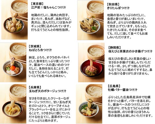 各都道府県でしか味わうことのできない、47種類の「つけ汁」を全国の丸亀製麺にて、数量・期間共に限定で販売。※1