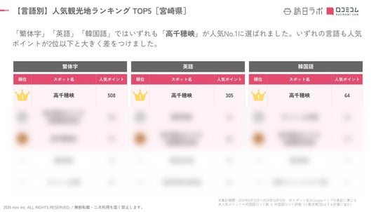 - 調査対象:訪日ラボが独自に選出した宮崎県の観光スポット 1,219所