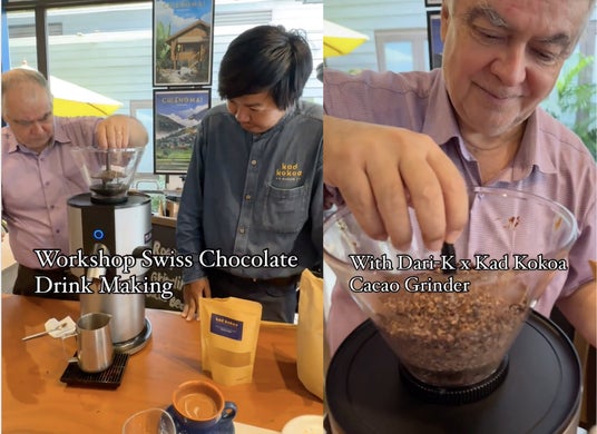 タイのBean to Barチョコレートメーカー「Kad Kokoa」は、カカオグラインダーを「未来のドリンク提供するマシン」と評し、マシンを使用したイベントを開催しています。展示会で新鮮なチョコレートリキュールを提供したり、タイの高級ホテル「スコータイホテル」で長年活躍したシェフローランを招き、タイ各地のカカオを使ったチョコレートドリンクを楽しむイベントを開催しています。