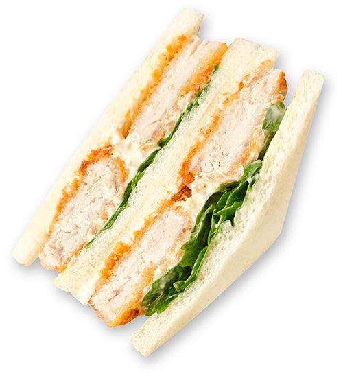 肉厚なキハダまぐろカツレツをタルタルソースと醤油で味付けし、レタス、大根、にんじんとサンドしました。
