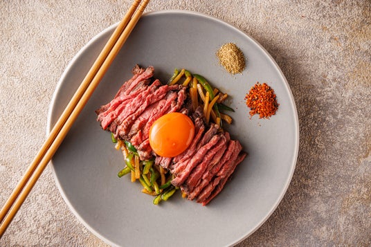 青椒肉絲の旨味とユッケの新鮮な卵黄が組み合わさった、贅沢で濃厚な一品。