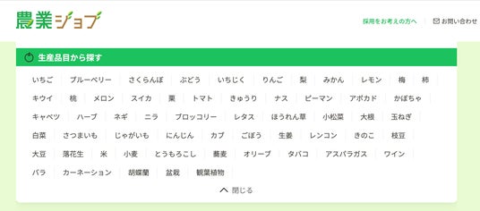 「農業ジョブ」トップページ「生産品目から探す」検索画面