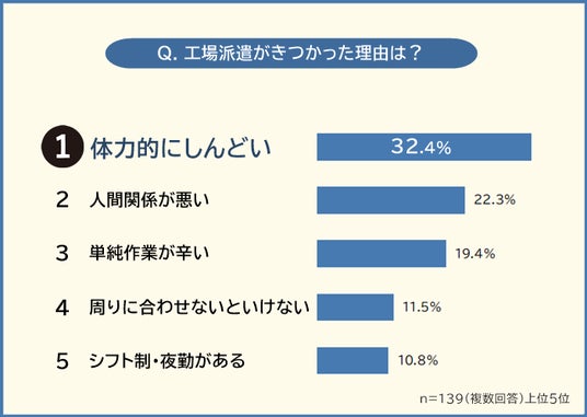・工場派遣がきつかった理由1位は「体力的にしんどい」
