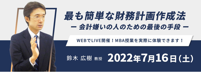 講師は、事業創造大学院大学で「財務会計論」「企業倫理」を担当する鈴木広樹教授です。本授業では、会計知識ゼロの方を対象として、最も簡単な財務計画の作り方について分かり易く解説していきます。
