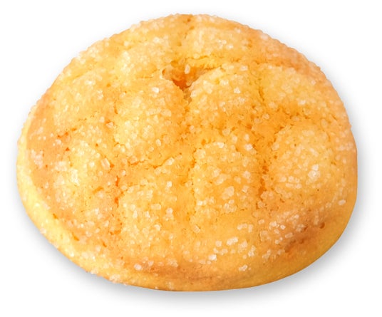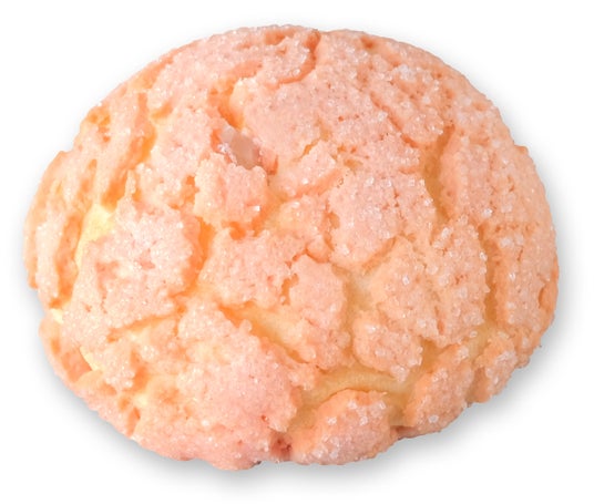 菓子パン生地に、桃風味のビスケット生地をのせ焼き上げ、カスタード風味のクリームを入れて仕上げました。