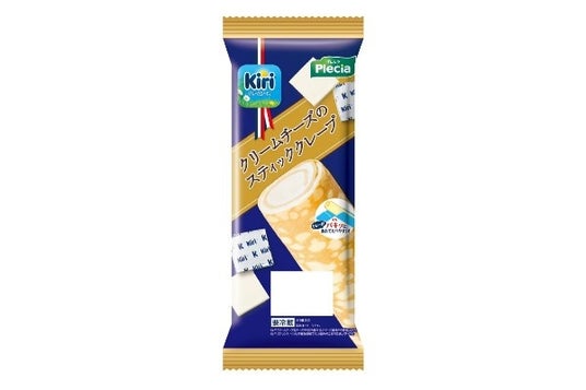 【商品特長】しっとりしたクレープ生地でホイップクリームとキリ クリームチーズホイップを包みました。中の容器がパキッと折れることで、食べやすさにも配慮したスティックタイプに仕上げています。今年の春に期間限定で発売し、好評だった商品が再登場です。