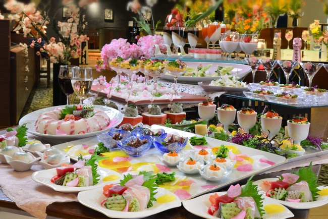 「WASHU BLUE RESORT 風籠」( 株式会社BEKKAN 本社:岡山市北区本町 社長 臼井幸隆)は、2022年3月19日(土)~5月31日(火)期間中「ブッフェダイニング竜宮の遣い」(2階)にて、インドアでお花見を楽しむ『お花見ブッフェ』を開催いたします。深海の生き物の「竜宮の遣い」の名の通り、深海をイメージするダークブルーのアプローチを抜けるとそこは、まるで竜宮城の花畑。料理長(内田英樹)による春野菜や桜鯛など旬の素材を活かした和の一品一品や春のフルーツ苺をベースとしたピンクや赤のカラフルスイーツで春の宴を演出!インドアで春の花々を楽しみながら、お腹も満たす至福の「お花見ブッフェ」をぜひお楽しみください。