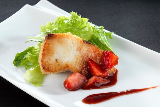 キレのあるバルサミコソースとフルーティーな苺の絶妙なコラボレーションで、さっぱりした味わいでお楽しみいただけます。