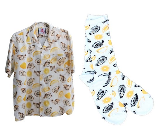 □ 牡蠣食う研とお揃い!牡蠣×レモン柄シャツ/レモン柄ソックス