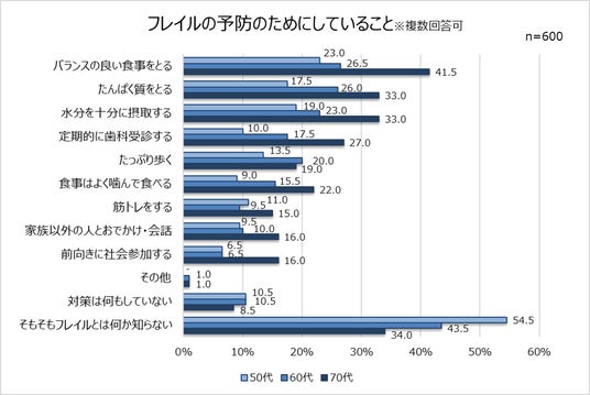 一方で、「筋トレをする」という回答は1割程度で、フレイル予防としての筋トレの意識は低いことが明らかになりました。