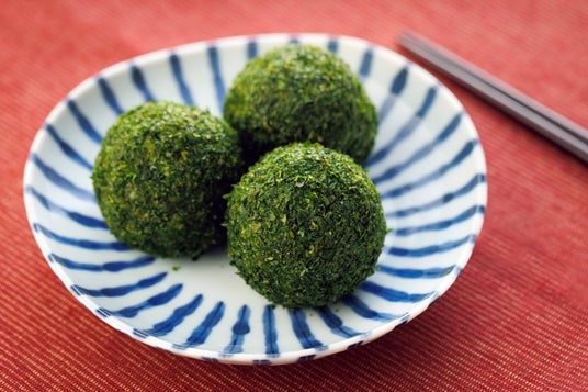 『あおさ香るまりもポテトサラダ』 ポテトサラダにケンコーマヨネーズ商品の『チュモッパの素』と桜えびを混ぜ、さらに、あおさをまとわせることでまるで“まりも”のようなインパクトのある見た目に仕上げました。