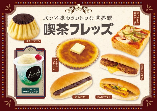 プリンやピザトーストなど、喫茶店のメニューをイメージしたパンをご用意いたしました。どこか懐かしい香りが漂うレトロな世界観をお楽しみください。