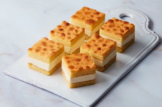 アーモンドパウダーを使用したビスキュイ・ジョコンドの生地でミルキーなバタークリームをサンドしました。ミルクとアーモンドの味わいが噛むほどに深くなり、軽い口当たりの中にリッチなクリームを楽しめます。