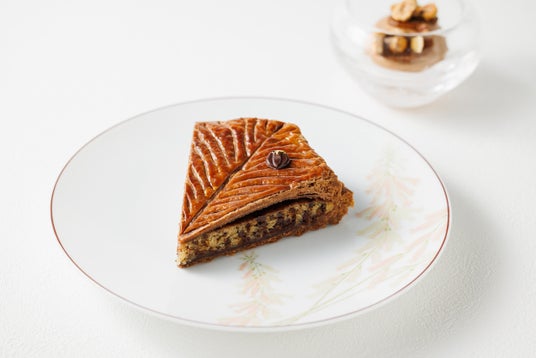 東京工房のル・サロンでは、新年を祝うフランスの伝統菓子、ガレット・デ・ロワをご提供いたします。6角形のガレットには、カカオ75%のショコラとヘーゼルナッツ&アーモンドのクリームがたっぷり。ヘーゼルナッツを模った可愛らしいショコラをトッピング。1カットをマダガスカル産75%ショコラのアイスクリームと一緒にお楽しみいただけます。フェーブが当たった方には、素敵なプレゼントをご用意しています。