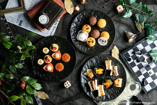 TVアニメ「黒執事-寄宿学校編-」をイメージしたコラボレーションアフタヌーンティー、フード、ドリンクをホテルクオリティの味でお楽しみいただけます。すべてのメニューは特典付きです。