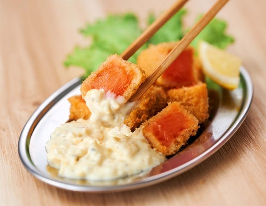 とろとろサクッ!食感がたまらない。レアなサーモンが美味しいカツ