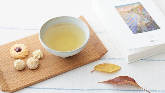 正月の晴れやかな気持ちを彩るように、茶葉には金粉が。一煎目の綺麗な緑色にキラキラと光り漂う金粉を楽しみながら、新しい1年に思いを馳せるティータイムを楽しんでください。