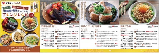 2024年4月にレシピサイト「Nadia」にて、ヤマキのだしパック商品(鰹節屋のだしパック/鰹節屋の割烹だしパック)を使用したレシピコンテストをそれぞれ開催しました。そして今回、料理研究家の方々より応募のあった全348のレシピの中から厳選しレシピ集を作成。レシピ集を封入した「鰹節屋の割烹だしパック8P」「鰹節屋の割烹だしパック20p」を限定発売します。