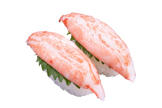 スギヨの看板商品である香り箱(カニカマ)を使用したにぎりです。