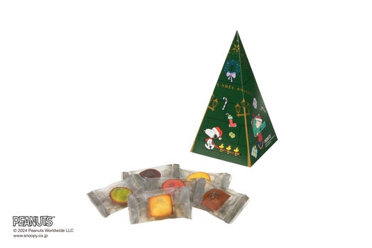 スヌーピーたちがクリスマスを愉しむシーンを、クリスマス限定のパッケージにしてお届けします。ひとつは、クリスマスにぴったりな帽子をかぶったスヌーピーとPEANUTSの仲間たちがかわいい缶ボックス。フィナンシェはアーモンドにこだわり、お作りの直前にアーモンドパウダーにし、口の中で香ばしく豊かな香りが広がります。プティ・ガトー・アソルティはバラエティ豊かな味が愉しめる、ひと口サイズのキュートな焼き菓子です。ちょっとしたプレゼントや自分へのご褒美に、心躍るクリスマスパッケージで楽しいクリスマスをお過ごしください。