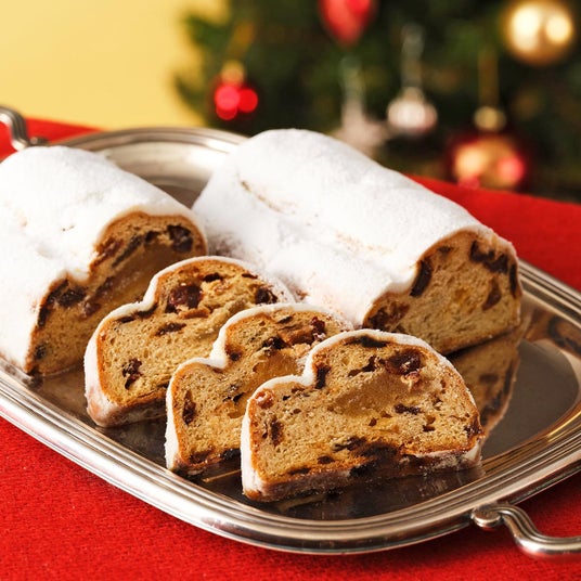 ドイツ発祥の伝統菓子「シュトーレン」。オレンジピールやレーズンなどのドライフルーツをたっぷり練り込んで焼き上げた「ミニマジパンシュトレン」と、リンゴの食感とシナモンの香りが楽しめる「ミニアップルシュトレン」の2種の味わい。