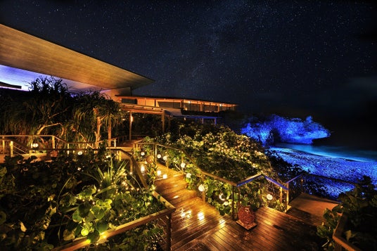 圧倒的な絶景とスケールを誇る海カフェ「バンタカフェ by 星野リゾート」では、冬季限定で、あたたかな冬の沖縄で楽しむナイトイベント「イルミーバンタ 海辺の夜あかり」を開催。目の前に広がる海や崖、生い茂る植物にライトアップとイルミネーションを行い、ビーチには琉球ガラスで作るオリジナルランタン、「海辺のテラス」には沖縄伝統の草編の民具をアレンジしたランプシェードが輝きます。また、「夜のピクニックセット」も販売。贅沢にアレンジした「ポークたまごおにぎり」をバスケットに入れて提供し、ランタンとビーチマットの貸し出しも可能。ビーチや高台のテラスなど好きな場所で夜のピクニックが楽しめます。