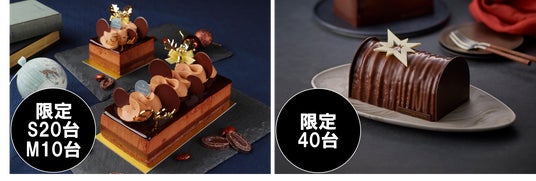 アーモンドとチョコレートの生地に、濃厚なチョコレートクリームやムース、クッキーを重ねたケーキ。別フレーバーの、ヘーゼルナッツやアーモンドの風味が楽しめる「ビュッシュ ドゥ ノエル プラリネ」(全25台限定)も。