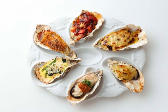 「ウニと牡蠣醤油の焼き牡蠣」「オイスターロックフェラー ~オランデーズソースとほうれん草~」「ガーリックバターと香草パン粉の焼き牡蠣」「オイスターキルパトリック ~トマトとベーコン、BBQソース~」「トリュフソースのカルボナーラ風焼き牡蠣」「ブルギニョンバターの焼き牡蠣」