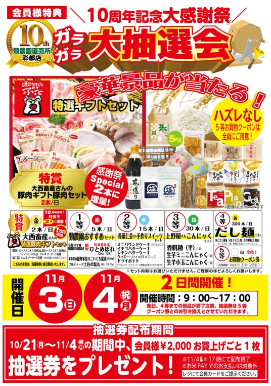 類農園彩都店開業10周年記念 大感謝祭イベント第1弾の概要