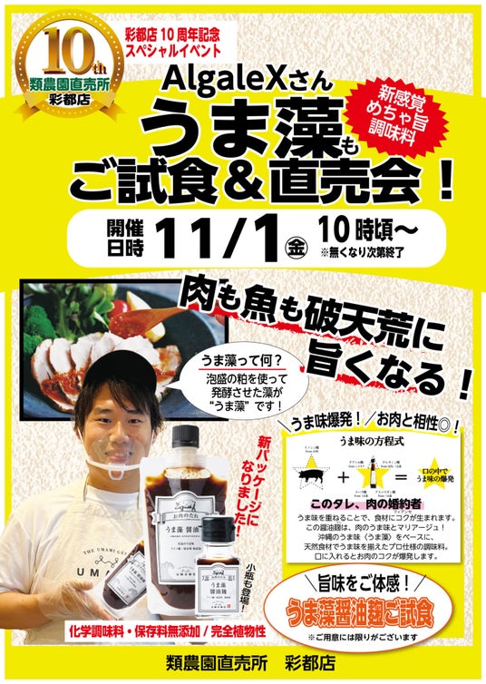 ・1日(金):AlgaleXさんによる「うま藻醤油麹 ご試食&直売会」