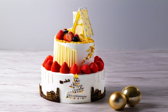 [ 商品紹介 ]:大切な方と過ごすクリスマスの夜をイメージしてデザインした2段の特別なケーキです。煌めく街並みやクリスマスツリー、プレゼントを持って訪れるサンタクロース、家での温かなひとときなど、さまざまなクリスマスのシーンを表現しました。下段にショートケーキ、上段にチョコレートケーキを組み合わせ、2種類の味わいを楽しめる贅沢な仕上がりです。