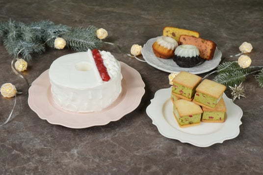 当店人気のピスタチオのカッサータサンドと姉妹ブランド シフォンケーキ専門店 This is CHIFFON CAKE.のクリスマス限定シフォンケーキのセットをご用意しました。