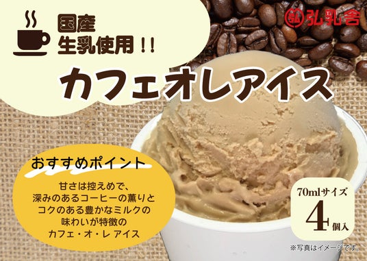 国産生乳使用!子どもから大人まで楽しめる「カフェオレアイス」です。甘さは控えめで、深みのあるコーヒーの薫りとコクのある豊かな味が特徴です。