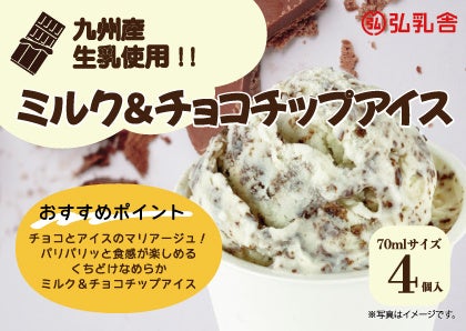 九州産の生乳で作られたミルクアイスにパリッと食感のチョコチップを混ぜ込みました。