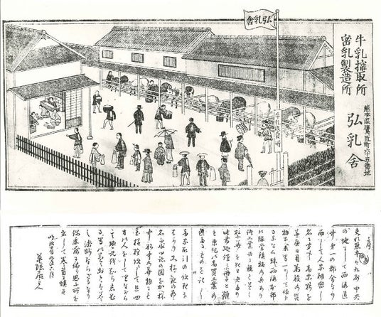 『弘乳舎』は、明治16年(1988年)熊本市鷹匠町で牧場経営から始まり、現在創業141年目を迎える乳製品製造メーカーです。『弘乳舎』の屋号は、「牛乳を弘く社会に普及する天下国家への奉仕」との思いから付けられました。