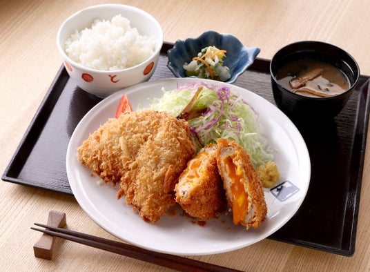 静岡漁港水揚げアジフライと月見メンチカツ定食