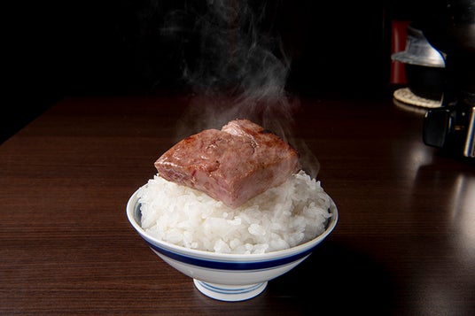 お肉をのせて炊きたてごはんを食べる幸せ