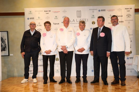 フランスを代表する来日シェフたち 左よりアラン・デュカス、ギィ・マルタン、パトリック・アンリルー、レジス・マルコン、LA LISTEフィリップ・フォール、ニコラ・ブノワの各氏