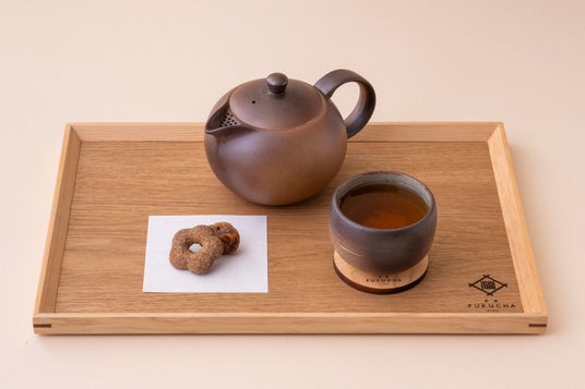 本年の京都府産一番茶を使用し、『香り』にこだわった鮮度の高い煎茶を店内で丁寧に焙煎します。焙煎には特別に開発したIH対応の器(炮烙=ほうらく)を使用。焙煎後に、FUKUCHA自慢のドリップティーをブレンドすることで香りと旨味を楽しめるお茶に仕上げています。このお茶を、お客様のテーブルにお持ちして急須にお入れします。お手元のお湯を注ぎ、2分待ってできあがりです。これから寒い季節に向かう中、焙じたての香ばしいお茶で、ぜひお寛ぎください。