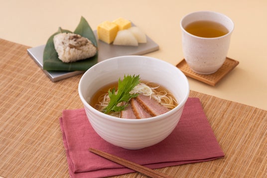 素麺は、冷たいつゆでいただくのが定番ですが、温かいスープもお選びいただけます。