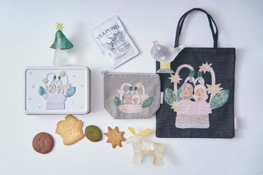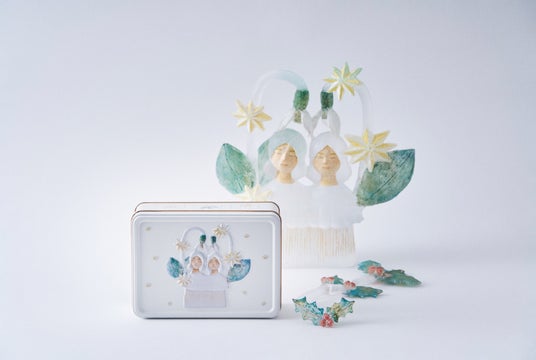 今年のクリスマスは、ガラス作家・安達知江さんとの特別なクリスマスコラボレーションをお届けします。テーマは『天使の祈り』。“希望”を花言葉にもつ「スノードロップ」のもとで双子の天使が星に願うガラス作品をモチーフにした『クリスマスビスケット缶』をはじめ、トートバッグセット、クリスマスポーチと紅茶のセットを展開いたします。安達知江さんのガラス作品が持つ繊細で静謐な優美さを表現した特別なクリスマス限定アイテムが揃います。