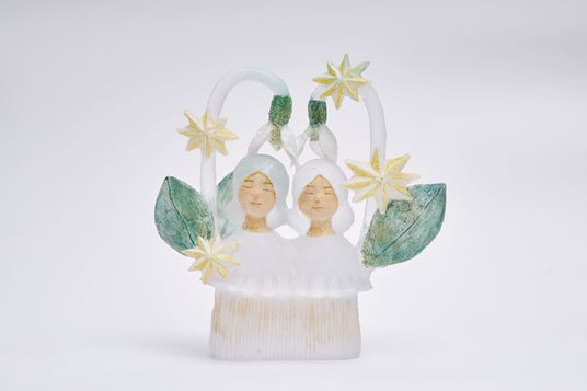 キルンワークという技法を使って作られる安達さんのガラス作品は、くもりガラスのような優しい質感で凛と佇み、淡く柔らかい光が差し込んだ姿が幻想的。一つひとつが手作りのため、同じものは一つとしてありません。クリスマスのワクワクした空気を感じさせてくれるガラスの静かな輝きで、冬の特別なひとときを彩ります。