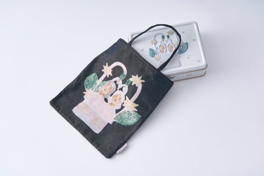 クリスマスビスケット缶と同じスノードロップと双子の天使のデザインを施した美しいゴブラン織りトートバッグは、缶がすっぽりと入るサイズ感。クリスマスギフトとしても、大切な人への贈り物としてもぴったりなセットアイテムをご用意しました。希望を象徴するスノードロップと天使たちの優しいデザインが、贈り物に特別な意味を添えます。